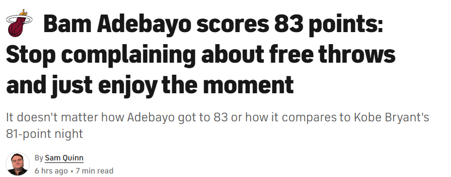 北京时间3月11日,CBS体育名记Sam Quinn对阿德巴约的83分做出了一番点评,回应了网上对这场高分表演的各种挑刺,听上去也是有理有据。以下是Quinn的全文——