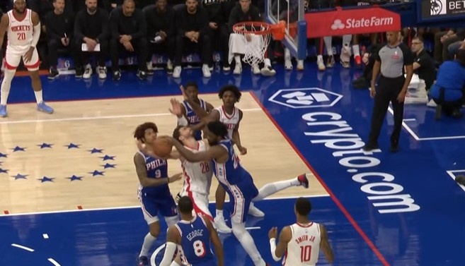 是个好防守!申京篮下强打恩比德造犯规 76人挑战成功